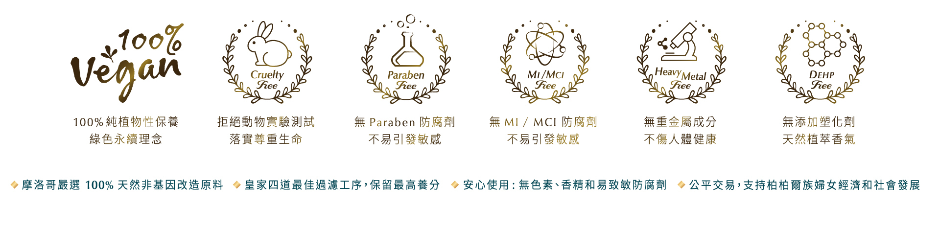 ECOCERT 認證 100% 天然有機、精萃自第一道冷壓,以皇室規格嚴萃之摩洛哥堅果油, 具有絕佳保濕、修護、緊緻等超強鎖水功效之頂級精華油。